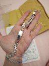 Полновесная цепочка. На фото изображена якорная серебряная цепь массой более 100 грамм и длиной около 60 см. Как показывает практика, цепочка с такими размерами привлечёт скорее мужское внимание, поэтому данную цепочку можно по достоинству назвать «мужской». Но не спешите закрывать страницу, если Вас не устраивают её размеры, ведь Вы всегда с лёгкостью сможете настроить её параметры (нажав на ссылку "Выбрать другие размеры") так, как считаете наиболее подходящими, отчего также может измениться и её стоимость.